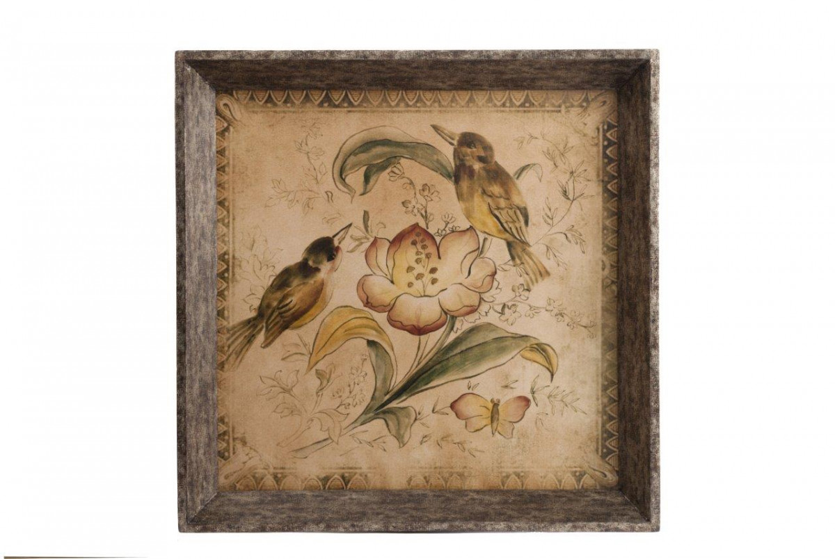 Декоративный поднос Difficile Two прямоугольной формы изготовлен из МДФ. Поднос декорирован рисунком в виде цветка и двух сидящих птичек. В декоре преобладают коричневые и бежевые оттенки. Гармония цвета и рисунка символизирует покой и единение с природой. Несет в себе утилитарную и эстетичекую функцию.
